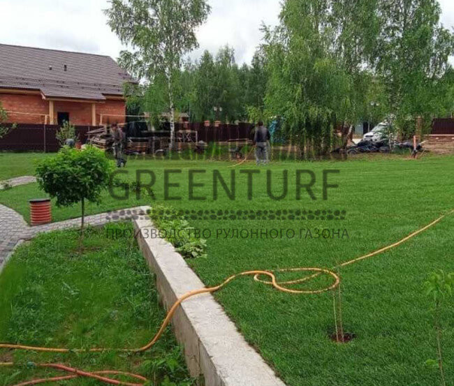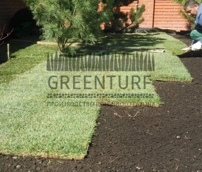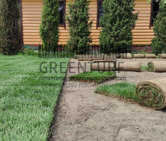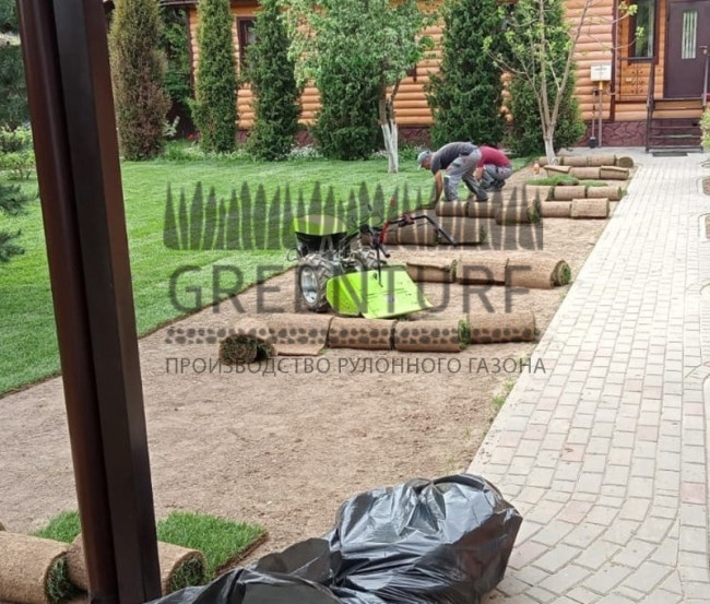 5. Привозим газонную траву оптом, качественно раскатываем рулоны.